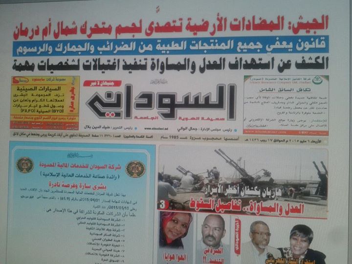 وأوردت صحيفة السوداني الصادرة صباح يوم الأربعاء في الخرطوم في صدر عناوينها الرئيسة (الجيش: المضادات الأرضية تتصدى لجسم متحرك شمال أمدرمان).