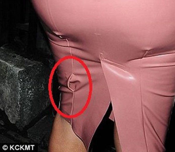 وقد ظهرت النجمة العالمية مرتدية فستانا قصيرا من اللون الوردى مصنوع من الجلد، وقد كشفت عدد من الصور أن فستان كيم كان ممزقا فيما أثار عدد كبير من عبارات السخرية وخاصة أنها تمتلك خط أزياء كامل.