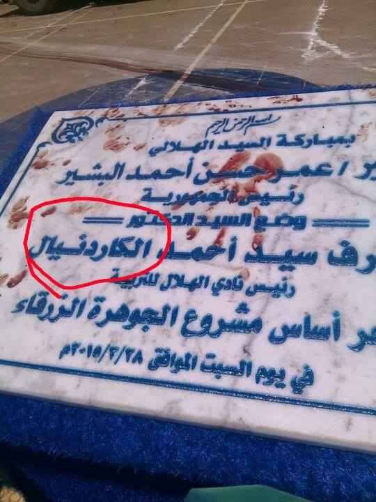 وذلك بسبب الخطأ الشنيع الذي وقع فيه ناحتي حجر أساس المشروع, حيث كتب اسم رئيس نادي الهلال السيد أشرف سيد أحمد الكاردينال, بطريقة مثيرة للسخرية.