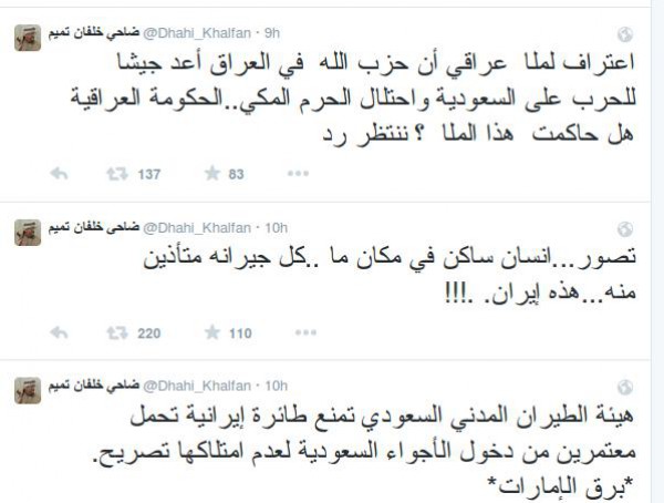 وأضاف عبر تغريدة له على موقع التواصل الاجتماعي “تويتر”، اليوم الخميس: “اعترف الملا عراقي أن حزب الله في العراق أعد جيشا للحرب على السعودية واحتلال الحرم المكي، الحكومة العراقية هل حاكمت هذا الملا ؟ ننتظر رد”