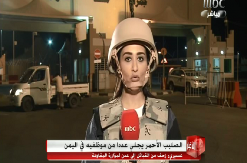 شاركت مقدمة الأخبار بمجموعة MBC جيهان الحداوي في تغطية “عاصفة الحزم” من منفذ الطوال الحدودي كأول إعلامية سعودية تباشر العمل الميداني. وأوضحت الحداوي أنه تم اتخاذ كافة الترتيبات لوجودها بأمان على الشريط الحدودي للتغطية الميدانية المباشرة على مدى أسبوع، معربة عن فخرها بالمشاركة في هذه العملية العسكرية. يذكر أن جيهان الحداوي أول إعلامية سعودية من المجموعة تغطي من الجبهة.