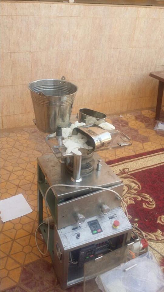 ضبط !! مصنع متكامل لصناعة الحبوب المنشطه المحرمه دوليا بمحافظة جبل اولياء(بمزرعه بمنطة اﻻديه) وتقدر القوة الإنتاجية باكثرمن 5 الف حبه فى الساعه تقريبا والجدير بالذكر ان المتهمين ثﻻثه أجانب من جنسيات (فلسطينى وبلغارى وسورى ) وما بجدر ذكره أن هذه الحبوب تعد من اخطر ما أنتجته عصابات المخدرات الدوليه وكان مسرح ارتكاب الجريمه مزرعة ولديهم شقه بشارع الستين بالخرطوم تستخدم كمعمل لخلط المواد الكيمائيه ويتم اكمال عملية انتاج الحبوب بواسطة الماكينه التى تظهر فىالصورة شبيهة بمفرمة (اللحوم) وهى من احدث ماكينات انتاج للحبوب .