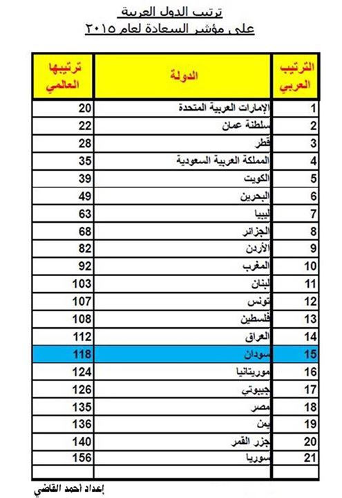 الشعب السوداني في المرتبة 118 عالميا بمؤشر السعادة،متفوقاً على الشعب المصري والسوري
