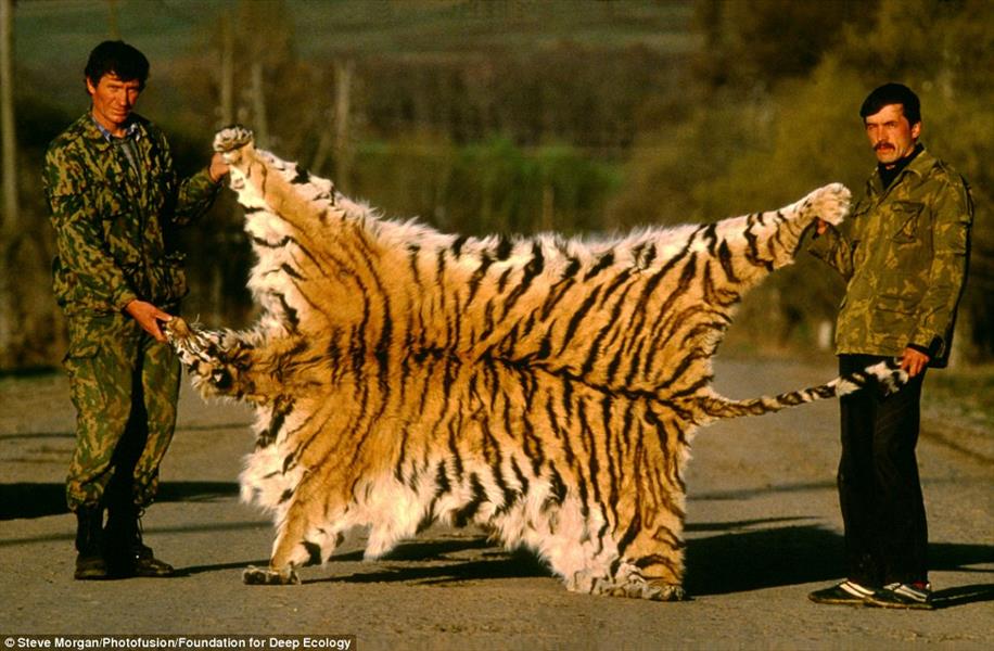 28- الفراء النادر: جلد نمر سيبيريا تم استعادته من الصيادين، سيبيريا، روسيا