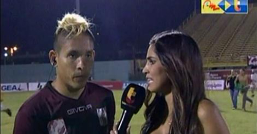 واقتحم أحد مشجعي الفريق المنافس الملعب وقام بركل اللاعب بقسوة في ظهره ما جعله يسقط على الأرض أمام الكاميرات وسط رعب وذهول المذيعة.