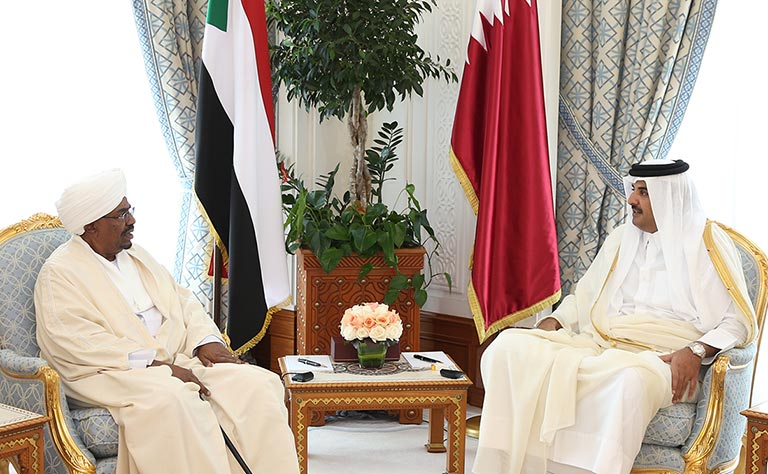 بحث حضرة صاحب السمو الشيخ تميم بن حمد آل ثاني أمير البلاد المفدى مع أخيه فخامة الرئيس المشير عمر حسن أحمد البشير رئيس جمهورية السودان الشقيقة العلاقات الثنائية بين البلدين والسبل الكفيلة بدعمها وتعزيزها في مختلف المجالات.