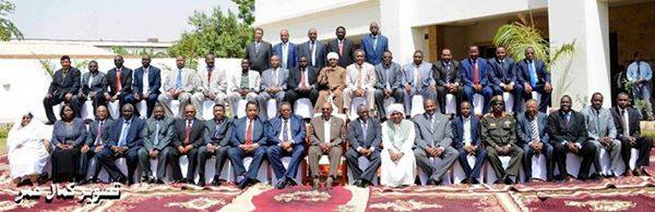 ودع أربعين وزيراً سودانياً مناصبهم بالتقاطهم لصورة تذكارية جمعتهم بالرئيس السوداني عمر حسن أحمد البشير.