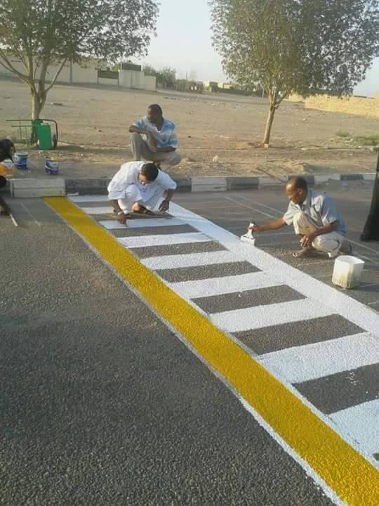 شباب متطوعون بمدينة دنقلا شمالي السودان يخططون أماكن عبور المشاة بشوارع المدينة