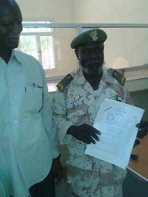 تسلم والد الطالبة فاطمة الأولي علي مستوي السودان في الشهادة الفنية قطعة الأرض المقدمة له من مولانا أحمد هارون والي ولاية شمال كردفان.