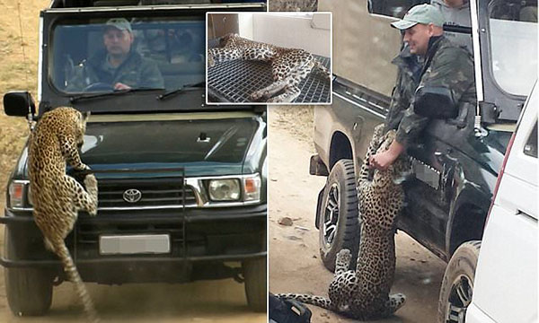 أنقذ مجموعة من السياح مرشد سياحى بريطانى هاجمه فهد، ونجحوا فى سحب ذراعيه من فكيه بعد أن ألقى السياح حقائبهم تجاهه، ثم اصطدم الفهد بباب سيارة أخرى يقودها أحد السياح.
