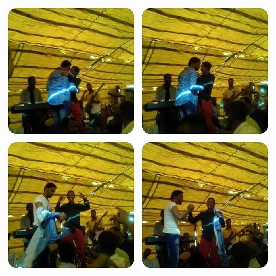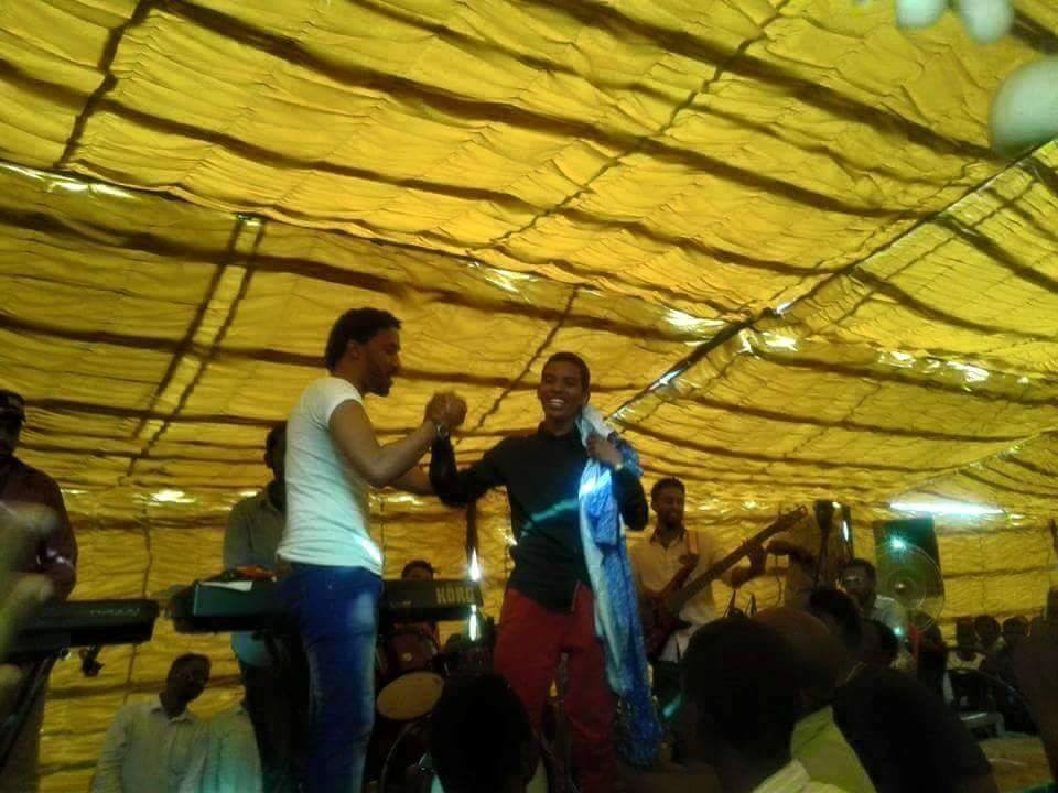 وبحسب الصور التي تداولها رواد مواقع التواصل فقد ظهر الشاب المعجب بأغنيات الفنان أحمد الصادق وهو بجواره ويطلب منه قميصه, فما كان من ود الصادق إلا وأن استجاب لطلبه ومنحه القميص.