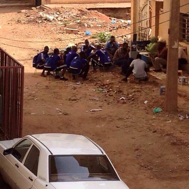 الان يتناول الصورة اشخاص غرباء ويقولون انظروا نادي الهلال السوداني وفي قلب العاصمة السودانية يتناول الشاي علة كومة زبالة