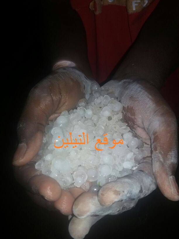 شنو يا جماعة ده حاجة عادية جدا ثلج نازل من السماء مع الامطار, ده يسمى برد (بفتح حرفا باء و الراء) و تكثر في المناطق الجبلية.
