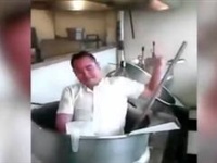 دخل الموظفون في هستريا ضحك من الموقف، واكتفى العامل بالجلوس في وعاء الطبخ مبتسما.