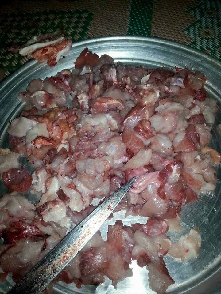ولم افق من دهشتي حتي رايت كميه من كرعين الدجاج ورؤس دجاج في محل اخر
