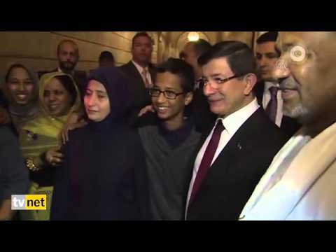 التقى رئيس الوزراء التركي، أحمد داوود أوغلو الجمعة 25 سبتمبر/ أيلول 2015، بالطفل ذو الأصول السودانية أحمد وعائلته، على هامش حفل عشاء نظمه وقف “توركان” التركي بالمكتبة العام لنيويورك.