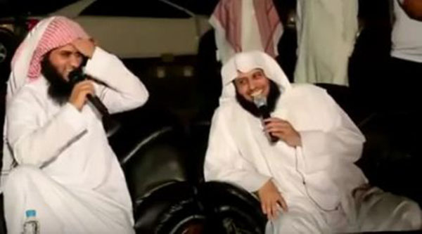 واستاء متداولوا المقطع من محتواه الذي جاء فيه إيحاءات غير لائقة أطلقها أحد الدعاة تجاه زميله وسط ضحكات غير مبررة، أمام الجمهور.