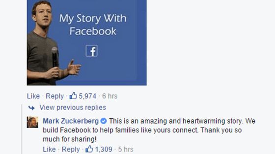 وقال زوكربيرج في تعليقه: “لقد بنينا فيسبوك لمساعدة العائلات مثل عائلتك على التواصل. شكراً جزيلاً لك على مشاركة هذه القصّة”، ظنّا منه أن الفيسبوك جمعها فعلًا مع أمها.