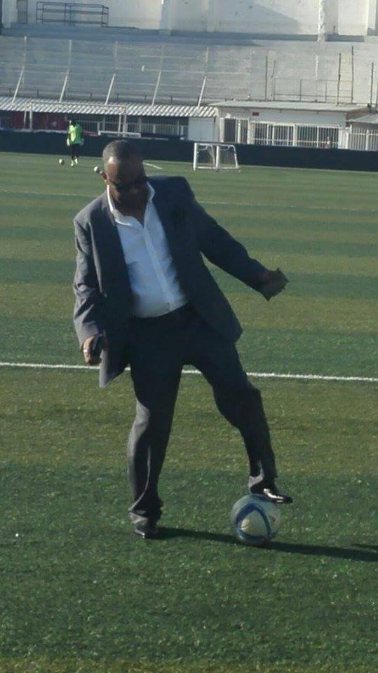 وقد أظهرت الصور المتداولة بشكل كبير رئيس الهلال وهو يحاول تسديد إحدى الكرات وهو مرتدياً (البنطلون).