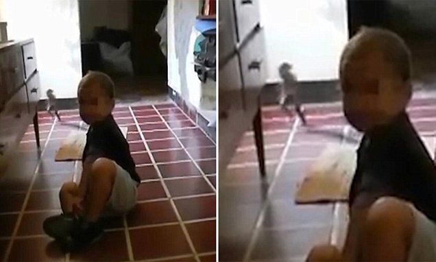 ادعت أم أرجنتينية تدعى “سيلفيا” أنها التقطت مقطع فيديو لشئ غريب يركض خلف طفلها “بنيامين” الجالس أرضا.
