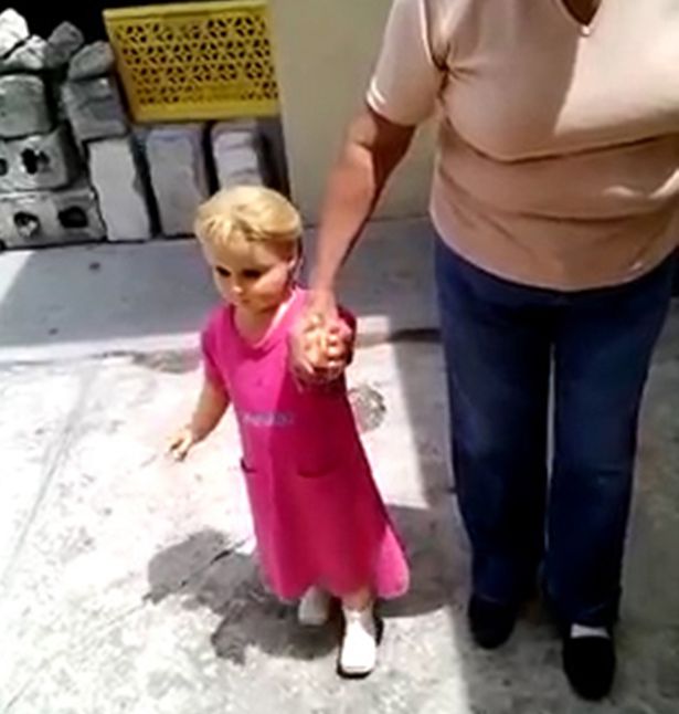 داول مستخدمو مواقع التواصل الاجتماعي مقطع فيديو يظهر دمية لديها عيون سوداء ضخمة تستطيع المشي بجانب البشر إذا مسكوا يدها.