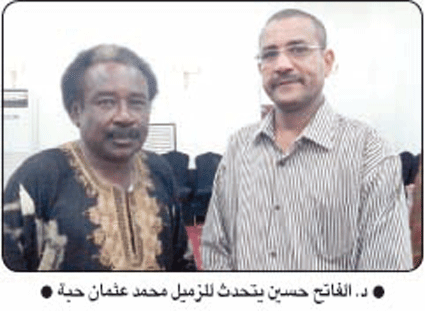 واكد الموسيقار الفتاح حسين في تصريحات صحافية خاصة بالدار ان مشاركته هذه المرة تعتبر الخامسة لتقديم ورقة علمية حول البحوث الموسيقية بعنوان (الغناء باللهجة العامية واثرها في التواصل الثقافي بين الشعوب العربية) وكشف الموسيقار الفاتح ان السودان عائد بقوة للمشاركة في مهرجان دار الاوبرا المصرية وحفلات الصيف السنوية العام القادم التي كان السودان مشاركا في اخر دوراته قبيل توقف المهرجان بسبب قيام الثورة المصرية التي انطلقت عام 2011 وكان السودان حضورا في تلك الدورة بمشاركة الفنانين وليد زاكي الدين وحسين الصادق.