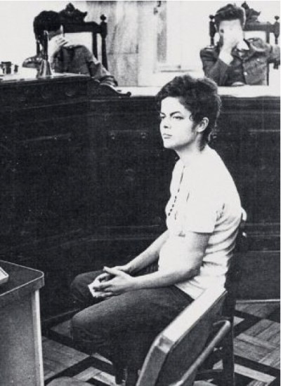 تعود الصورة أعلاه لعام 1970 في البرازيل، وهي لفتاة ذات الـ22 عاماً كانت تحاكم أمام قضاة يُوارون وجوههم خجلا من شجاعتها بعد اعتقالها وتعذيبها بالكهرباء وإغراقها في الماء لمدة 22 يوماً بتهمة التحريض ضد العسكر الذين كانوا يحكمون البرازيل حينها. وتم اطلاق سراحها عام 1972.