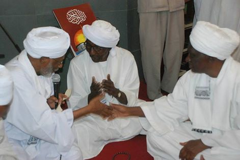 بالأمس وفي الحارة التاسعة بالثورة بام درمان كان اللقاء التاريخي بين شيخ الترابي وعلي عثمان بعد ستة عشر عام من القطعية ،وان كانت مناسبة الجمع غير سياسية حيث الشيخين مناسبة زواج ابنة عبد الرحمن مصطفى الكرنكي ، حيث مثل علي عثمان وكيل العروس والترابي وكيل العريس ، وربما يعد هذا العقد في منظور سياسي هو عقد جديد للمؤتمرين الوطني والشعبي بعد طلاق استمر ستة عشرة عاماً .