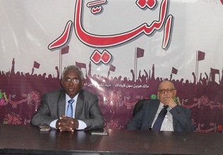 المحامي نبيل أديب يمين،ورئيس تحرير(التيار) عثمان ميرغني في مؤتمر صحفي الأربعاء 16 ديسمبر 2015، صورة لـ (سودان تربيون)