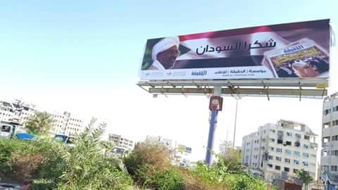 زاحت حملتا “شكرا مملكة الحزم” و ” شكرا إمارات الخير” الستار عن لوحة كبرى لفخامة الرئيس السوداني عمر حسن أحمد البشير بعنوان (شكرا السودان ) في عدن برعاية مؤسسة (الحقيقة) للإعلام ,ورفعت اللوحة في أهم شوارع العاصمة عدن بدوار السفينة .