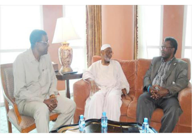 وفاء لوعد من أركان حربه، في الدوحة ومدير مكتبه التاج بانقا عضو لجنة الحوار الوطني، خص الترابي “الشرق” بلقاء في فندق “ريتز كارلتون “بحضور نائبه الدكتور علي الحاج الذي قدم من برلين ولا يزال سؤال متى يعود إلى الخرطوم يطارده، حيث يكتفي بالقول ” العلم عند الله”!.
