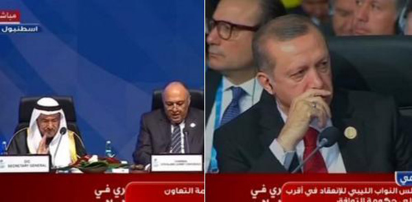 تجاهل سامح شكري وزير الخارجية المصري مصافحة الرئيس التركي رجب طيب أردوغان خلال تسليمه رئاسة مصر لمؤتمر قمة التعاون الإسلامى لتركيا اليوم الخميس.