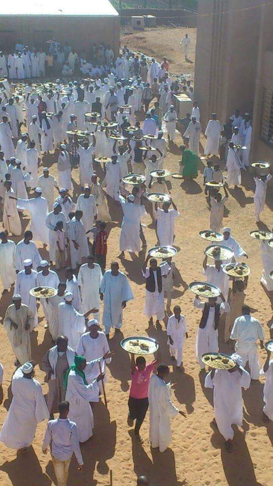وبحسب متابعات محرر موقع النيلين لصفحات مواقع التواصل الاجتماعي التي نشرت الصور وأكدت أنها من داخل مسيد الشيخ الكباشي, فقد جاءت المأدبة الكبيرة مكونة من أصناف اللحم والدجاج.