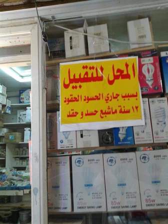 وكان أحد التجار السعوديين بالرياض قد عرض محله التجاري لبيع الأدوات الكهربائية للتقبيل وقد كتب ( المجل للتقبيل بسبب جاري الحسود الحقود 12 سنة ماشبع حسد وحقد ) !