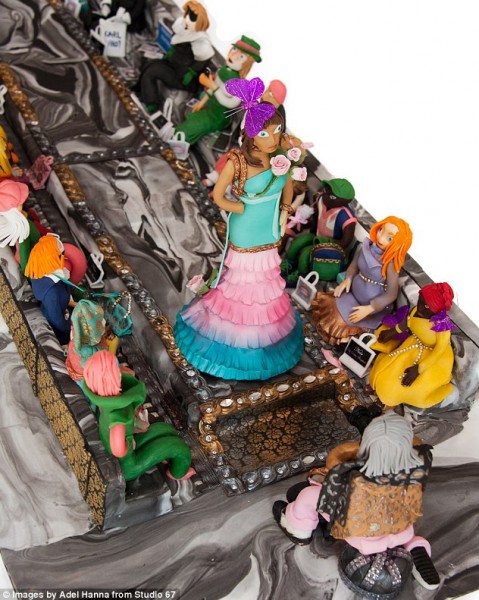 وهذه ليست المرة الأولى التي تنفذ فيها ديبي ونجهام مهمة كهذه فهي من قبل صممت أغلى ثوب زفاف في العالم ، بلغ سعره 11.5 مليون جنيه استرليني، أما قالب الحلوى هذا فأمضت ما يزيد عن 45 يومًا في صناعته حيث صنعت منحوتات صالحة للأكل، وأحكمت ونجهام مشهد الحضور حين أرفقت إلى جوارهم حقائب وهواتف خلوية.