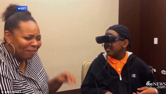 انفجرت أم في البكاء عندما تمكن ابنها البالغ من العمر 12 عامًا من رؤيتها للمرة الأولى باستخدام نظارة إلكترونية.