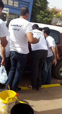صباح الجمعة وفي طريقي للفرن اشتري رغيف الفطور ، لقيت مجموعة كبيرة من الشباب السورين لابسين تي شيرتات بيضاء موحدة وانيقة ، لقيتم في شارع المشتل في الرياض – وعادة الشارع بكون خالي من الناس في صباح الجمعة – وكانو في قمة النشاط والحيوية بنظفوا ويزينوا الشارع ووترتوار الزلط بي بوهية والوان جذابة ، ورسومات لعلم السودان في الاعمدة وجايبين معاهم كراكات وعربات لتنظيف اطراف الزلط من الغبار والتراب …