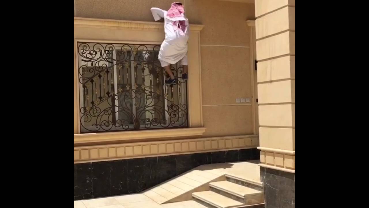 أظهر مقطع فيديو متداول مهارات فريدة من نوعها لشاب خليجي يقوم بتسلق واجهة بيت ليصل إلى السطح في أقل من نصف دقيقة.