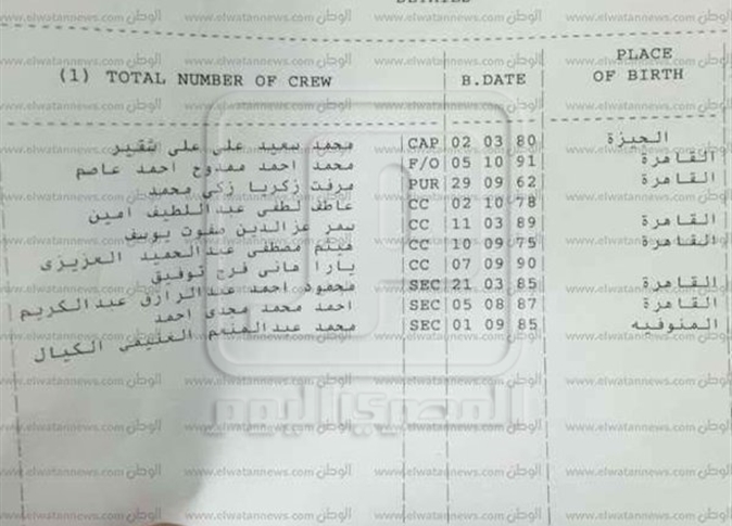 بالأسماء والصور.. طاقم الطائرة المصرية المنكوبة