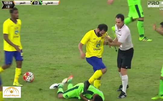 بالفيديو: الفريدي يركل لاعب الأهلي مهند عسيري