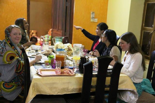 امريكان يتناولون الافطار على برش رمضان في السودان وموظفات السفارة يرتدين الثوب السوداني+صور
