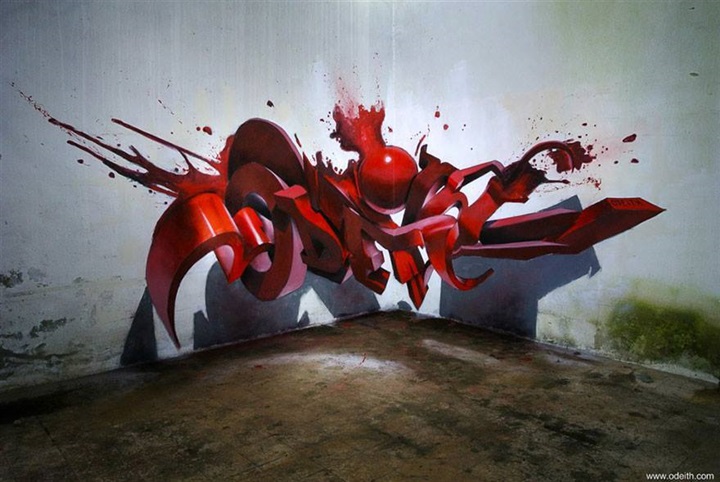 انتقلت تقنية الرسم ثلاثي الأبعاد من الرسم على الورق إلى فن الجرافيتي ومع كبر حجم تلك الرسومات يهيأ لك أنها تطفو في الهواء محلقة.