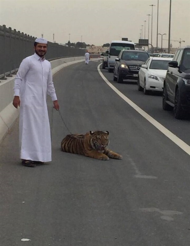 شاهد بالصور.. لقطات صادمة لأشخاص يتنزهون مع حيوانات مفترسة