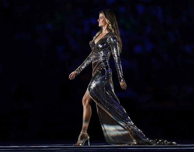خطفت عارضة الأزياء الشهيرة جيزيل بوندشين الأنظار في حفل افتتاح دورة الألعاب الأوليمبية ريو 2016، بالمشي على أطول مدرج أزياء عالمي بحضور 78 ألف متفرج.