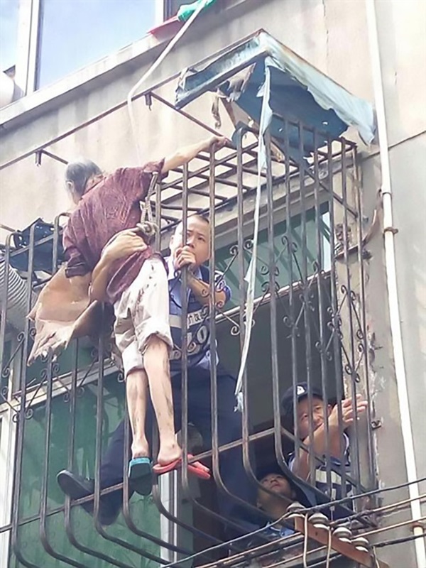 تداول نشطاء مواقع التواصل الاجتماعي صورًا لشرطي صيني أنقذ حياة رجل مُسن، حيث أمسك بخصره لمدة 30 دقيقة بعد سقوطه من نافذة.