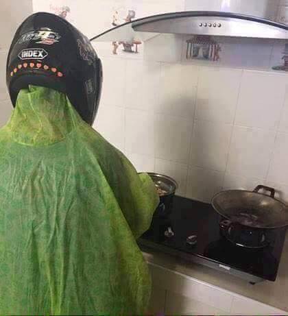 يتعامل بعض الرجال مع عملية طهو الطعام على أنها معركة يود أن يتجنب خسائرها، وهو ما حاول فعله بعض الرجال في الصور المتداولة عبر موقع التواصل الاجتماعى “فيس بوك”.