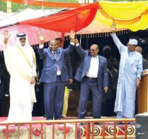 كانت كلمة رئيس الجمهورية المشير البشير مبينة وشاملة لكثير من التفاصيل الخاصة بدارفور وعلاقات السودان بجواره الأفريقي وعمقه العريي، شاكرا أمير قطر لجميل صنيع بلاده ومساهمتها في بسط السلام والأمن والتنمية بدارفور، وقال البشير إننا أطلقنا اسم عبدالصبور على عبد الله آل محمود رئيس الوزراء القطري كناية عن صبره على المفاوضات، كما حملت رسائل إخاء للرؤساء الذين شاركوا في البرنامج واعترافات وتجاوز للماضي والعبور إلى المستقبل بمفهوم ينظر إلى المصالح العليا للبلاد والمنطقة بشكل عام.. وكان الرئيس التشادي إدريس ديبي مهتما ومتابعا لتفاصيل حديث الرئيس سيما حديثه الصريح عن الأزمات وسحابة الصيف التي مرت على البلدين واعترت علاقاتهما في فترة من الزمان الماضية وقد تسببت في بعض الخسائر المادية والسياسية بين البلدين..