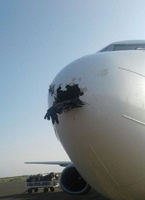 (صقر) اخترق مقدمة طائرة تتبع لشركة (تاركو) ودفعها للهبوط اضطراريا بالفاشر ..السبت 10سبتمبر ..صورة لـ(سودان تربيون)