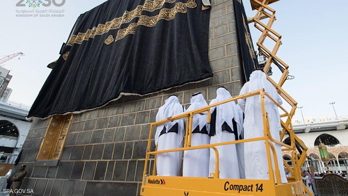 أشرفت الرئاسة العامة لشؤون المسجد الحرام، فجر الأحد، على تبديل كسوة الكعبة المشرفة التي اكتست بحلة العيد كما جرت العادة في فجر يوم عرفة من كل عام، وقد نشرت وكالة الأنباء السعودية “واس” صورا لهذه العملية.