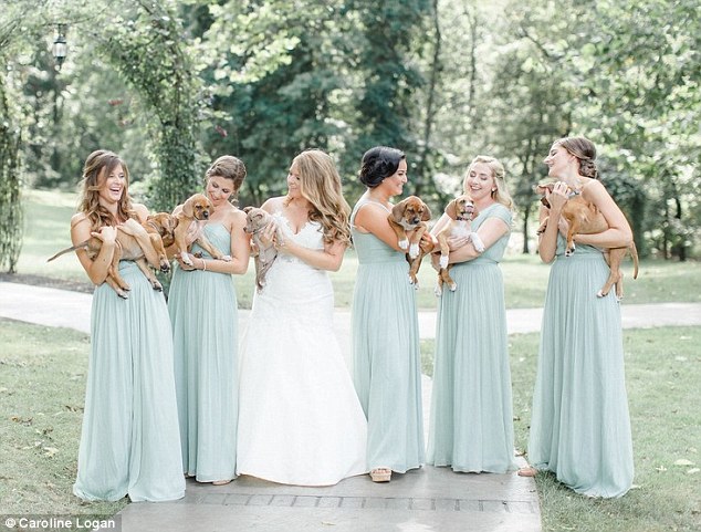 ووفقًا لما نشرته صحيفة “ديلى ميل” البريطانية، تعمل “سارة مالوك كرين” من بنسلفانيا بملجأ لإنقاذ الكلاب والعمل على تبنيها، مما جعلها تمنح وصيفاتها فرصة حمل الجراء، بينما ظهر أصدقاء العريس بعدد من الكلاب أيضا.